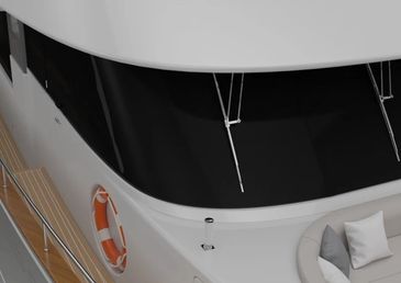 Our yachts are known for their refined details, combining wood, stainless steel, and decorative varnish coatings. We work with industry leaders like Lechler Stoppani to provide the best finishes. Large windows, elegant or thicker depending on customer needs, meet strict CE-A ocean certification standards, ensuring both style and safety.
